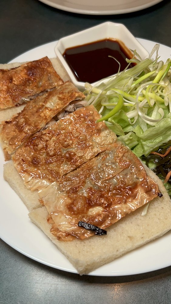 Served with a sauce of scallions, sesame oil and soy.